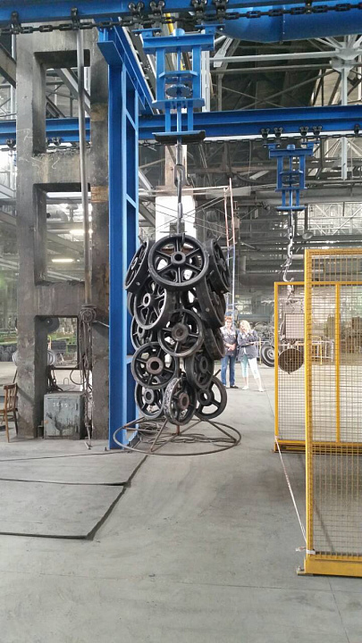 Shot blasting machines are designed for blasting of automotive castings. The largest delivered shot blasting machine is CH20x25 / 4W2C / MS type, equipped with 4 x 30 kW turbines and allows to blast a casting clusters with dimensions (LxV) 2000 x 2500 mm, with a total weight of 2000 kg. With the commissioning of new shot blasting machines, JSC TMP significantly eased the load in the heat-treatment department.
